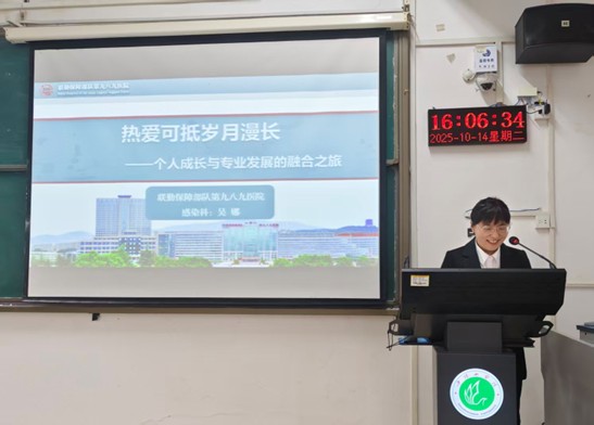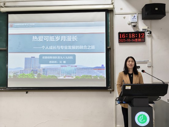 讲座开始,吴娜以自身职业经历为脉络,从感染科工作初心讲起,分享职业成长中的关键感悟,同时表达对带教护士的感恩之情,为学生勾勒出清晰的职业成长路径。随后,她结合抗疫一线工作经历,通过防护服穿戴细节、团队协作案例、紧急护理场景等真实故事,让学生直观感受到护理工作的责任与担当。