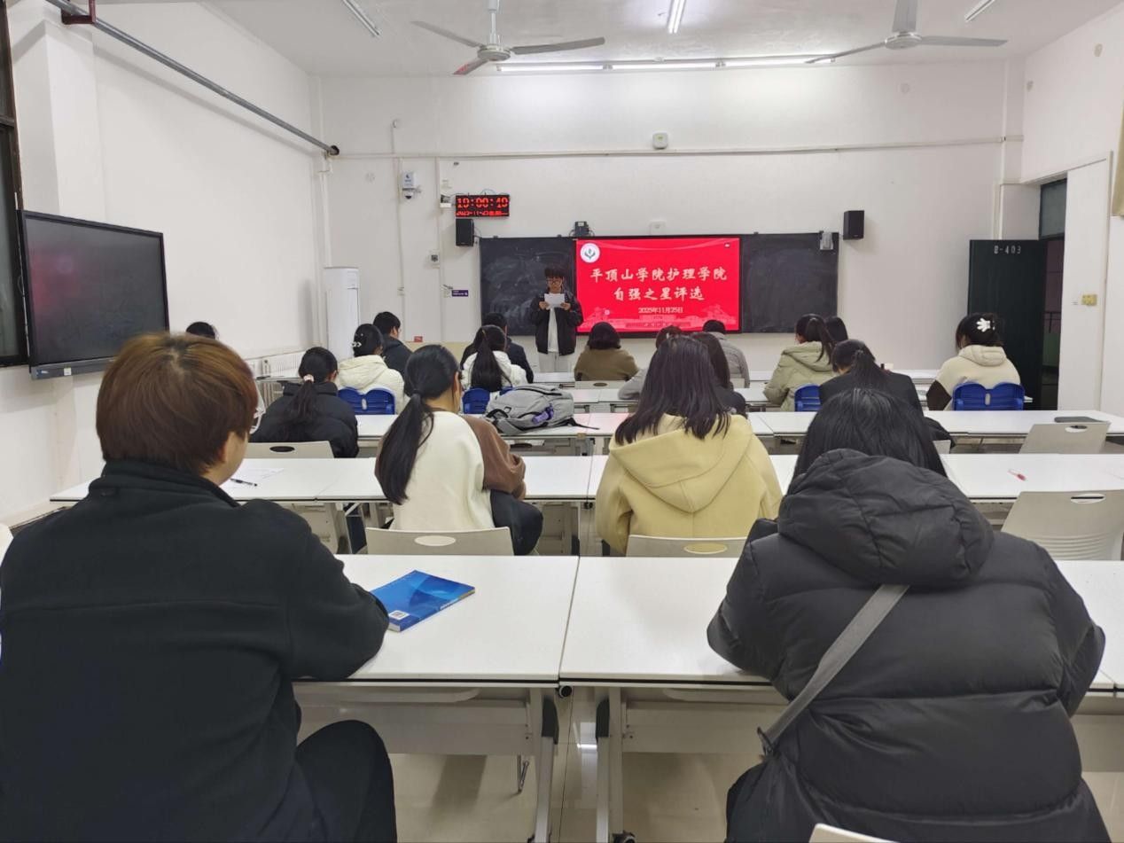 为深入贯彻落实习近平总书记相关重要思想,弘扬平院学子自立自强的精神,树立励志先进典型,发挥榜样引领作用,11月25日19:00,护理学院于B403教室举办2025年度“自强之星”评选活动。本次活动由辅导员符越、袁辰阳、优秀学生工作者担任评委,八位学生代表参与评选。