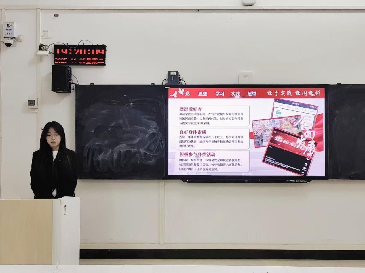 参评同学依照抽签顺序依次上台答辩,围绕学习表现、活动参与、科研创新等方面进行陈述,全方位地呈现了个人自立自强、拼搏奋进的故事。参评同学精彩的发言和展示赢得了现场阵阵掌声。