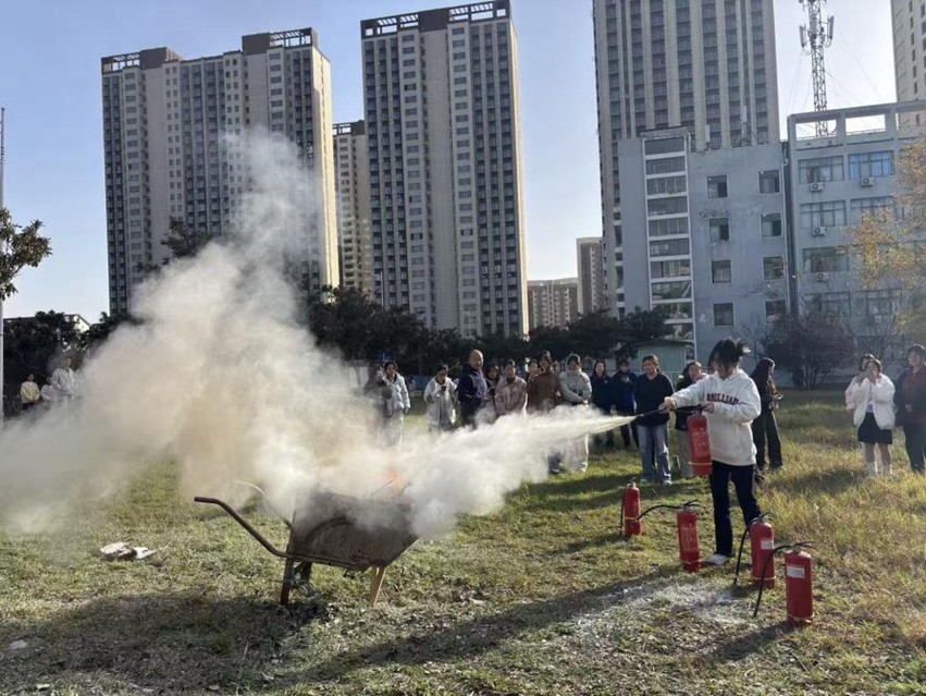 理论培训结束后,师生们来到演练场地。消防救援部门专业人员现场演示灭火器的正确操作流程,“提瓶身、拔保险销、握喷管、压把手”,每一个动作都讲解得清晰到位。随后,同学们进行模拟灭火,通过亲手扑灭火源模型的实际操作,真正掌握了消防器材的规范使用方法,切实掌握消防器材使用技能。