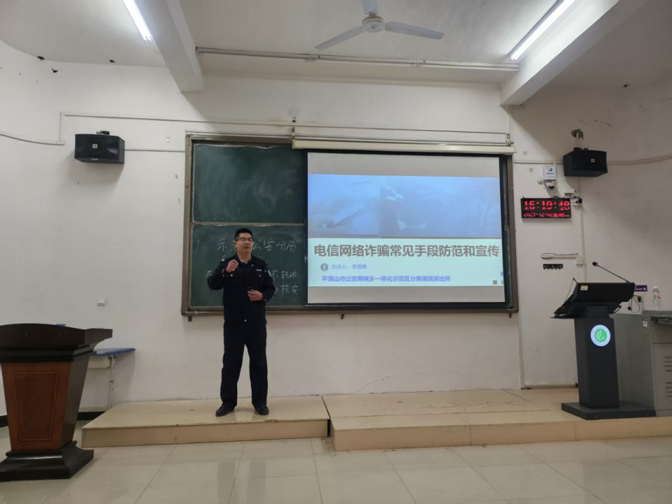 为提升学生防范电信网络诈骗的意识和能力,12月2日15:00,护理学院特邀两名驻校民警在C001教室为25护理学专业学生开展了一堂实用的防范电信诈骗主题班会。本次班会结合高校学生常见的诈骗案例,以通俗易懂的语言为同学们呈现了一节“反诈必修课”。