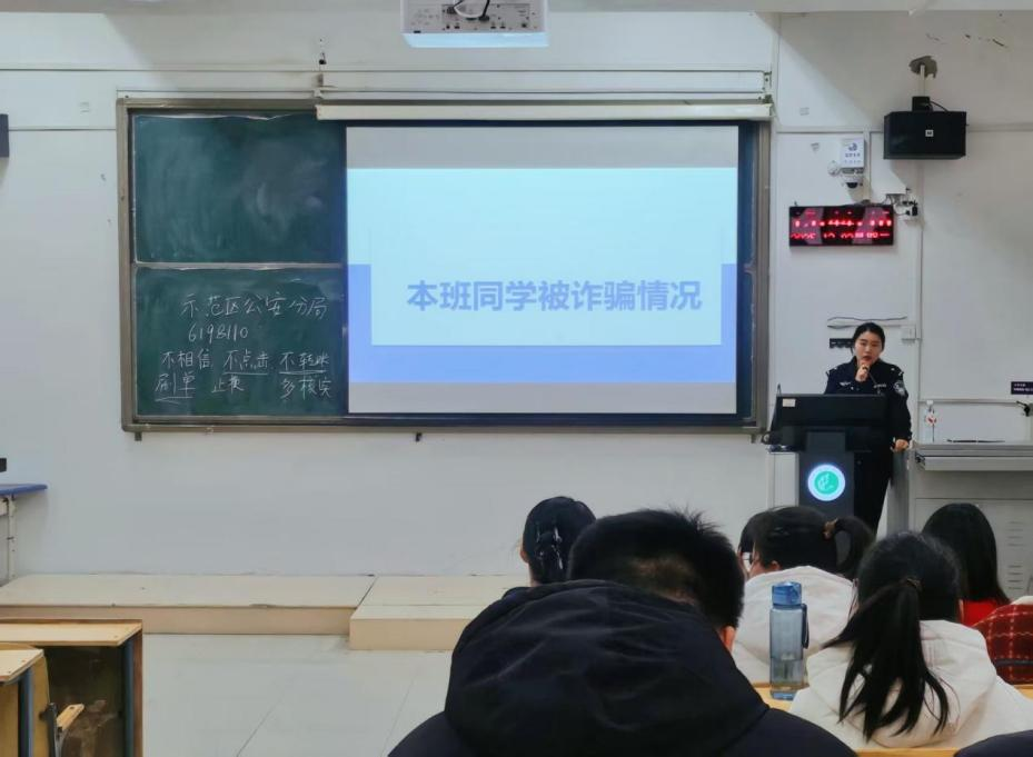 班会现场,民警结合高校诈骗高发案例,聚焦网络贷款、刷单返利、冒充客服、虚假中奖等大学生易遭诈骗类型,用通俗语言拆解作案套路与伪装技巧,强调电信诈骗隐蔽性、诱惑性特点,传授“未知链接不点击、陌生来电不轻信、个人信息不透露、转账汇款多核实”的“三不一多”防范原则。互动环节中,民警耐心解答同学们提出的可疑情况咨询,现场氛围活跃。