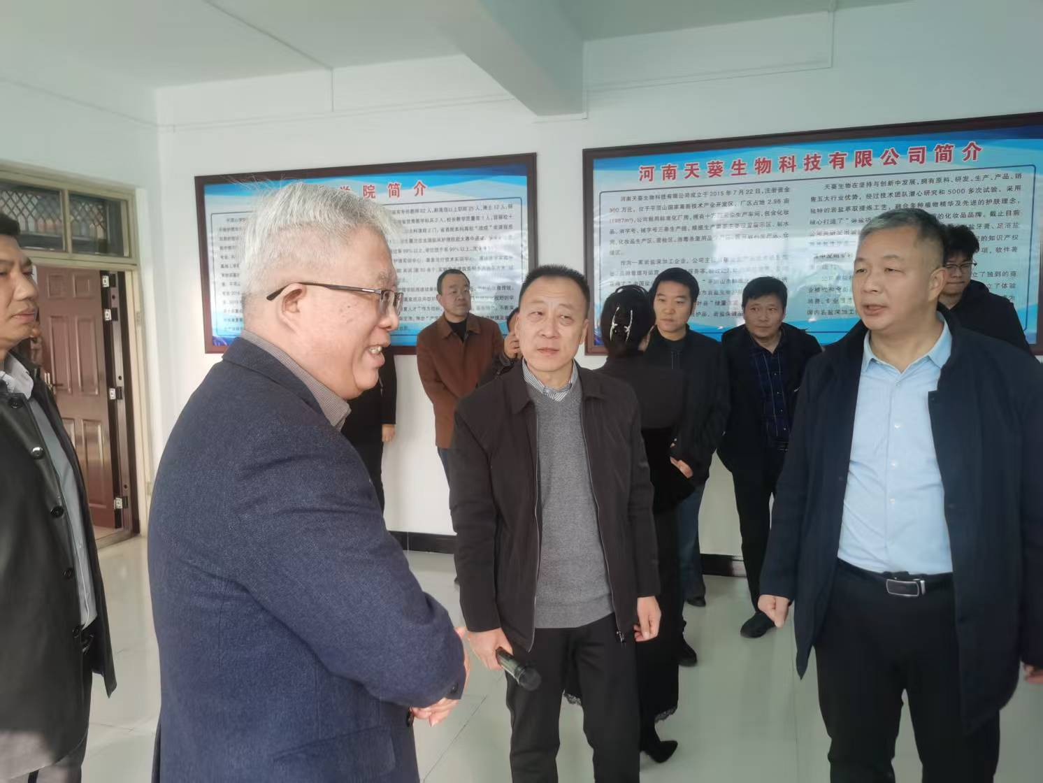 仪式结束后,与会领导前往中平发展分公司四楼研发中心参观调研。听取了科贸部经理闫丹丹对中心基本情况的介绍,并观摩了河南天葵生物科技公司展示的产品原料与“中蓝盾”矿工洗护用品品牌故事。
