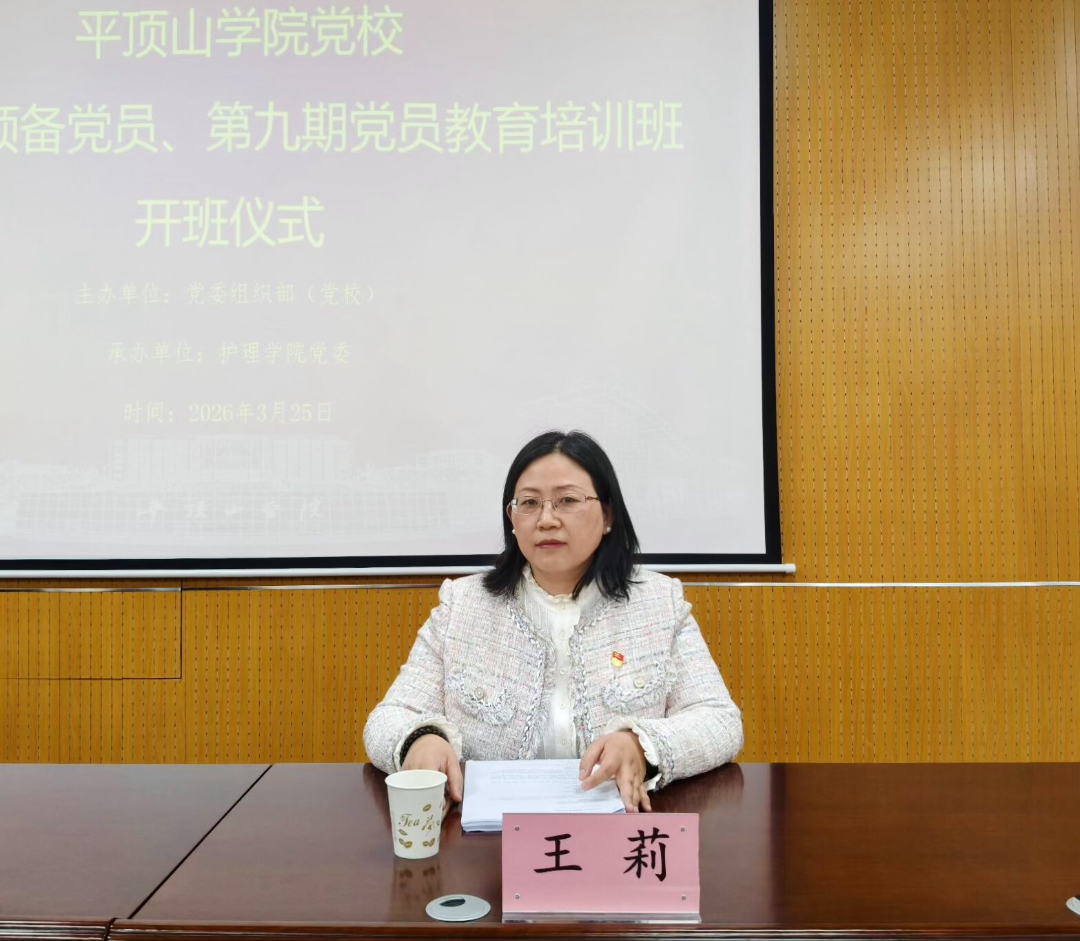 3月25日晚,由学校党委组织部和党校主办,我院党委承办的平顶山学院第十一期预备党员、第九期党员教育培训班开班仪式在崇文校区2号学术报告厅举行。我校党校副校长李凯,医学院党委书记王莉出席仪式,护理学院、医学院、医药科技学院、附属口腔医院及继续教育学院的正式党员、预备党员参加培训,开班仪式由我院党委副书记王继红主持。