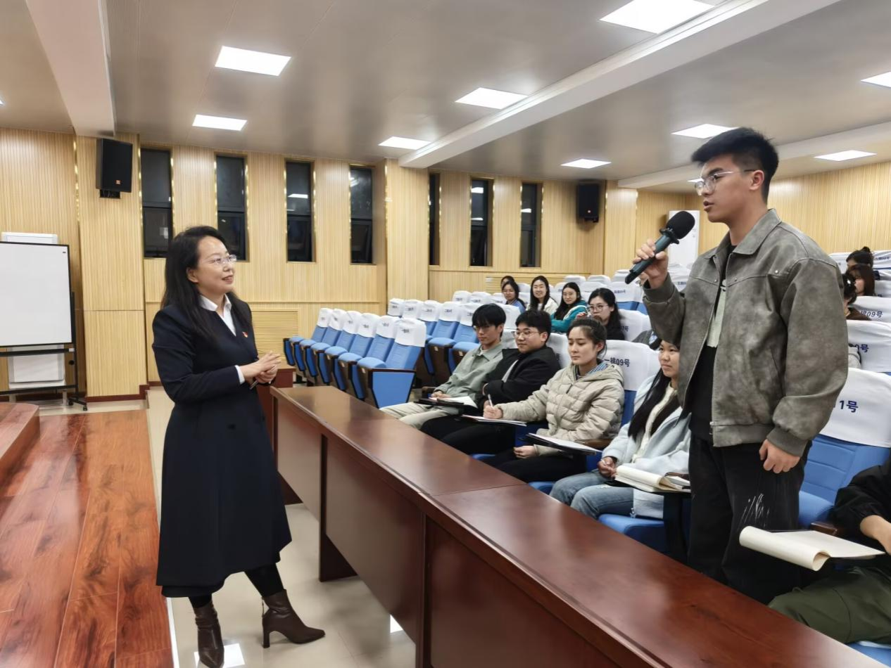体育学院党委书记井怡琼老师和学生互动(摄影/路景驰)