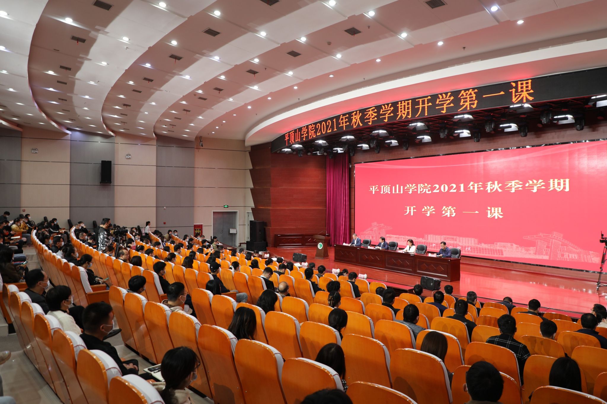 为深入学习贯彻习近平总书记在党史学习教育动员大会、庆祝中国共产党成立100周年大会上的讲话精神,用好抗洪救灾、抗疫防疫的鲜活教材,促进大学生树立正确的世界观、人生观、价值观,10月11日上午8点,学校组织进行了2021年秋季学期开学第一课。第一课采用集中与分散、线上与线下结合的形式进行授课。校领导、师生代表在中心会议室参加现场活动,党委副书记田建伟主持活动,全校学生通过移动端和电脑端在线进行了学习。
