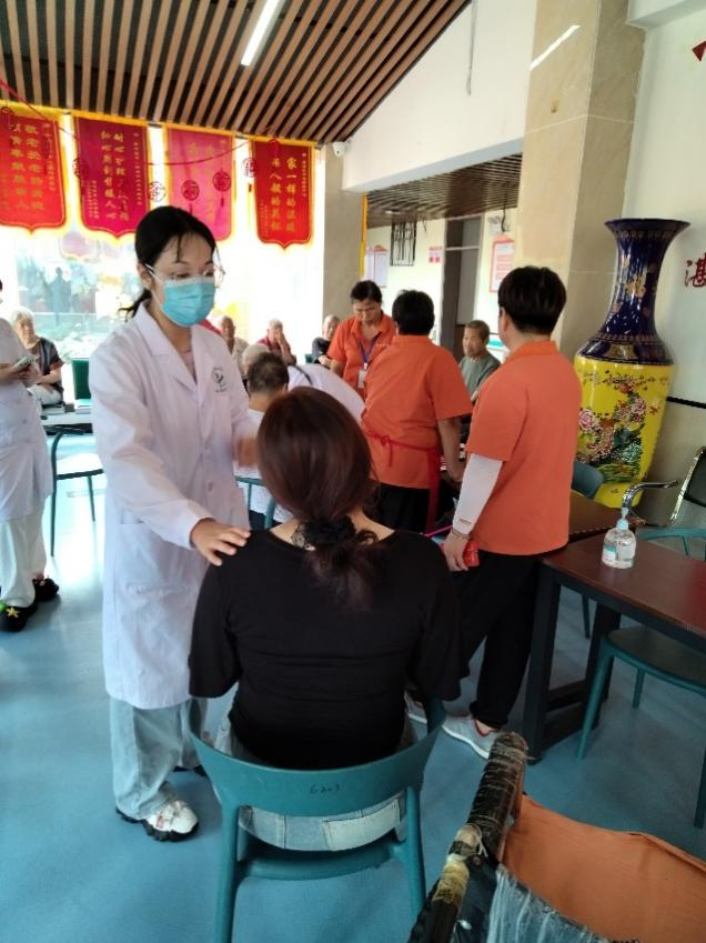 活动中,黄塔明氏骨科第十二代传人明虎斌老师以现场老人为案例,带领学生分析“颈肩腰腿痛疾病的病理机制、护理要点及中医干预手段;在“操作示范台”,对老人进行“经络疏通推拿”实操,将“理论讲解-实践操作-临床反馈”有机融合。在近三个小时的活动里,师生们累计为40余名老人完成健康检查,开展推拿、针灸等理疗服务30余人次。