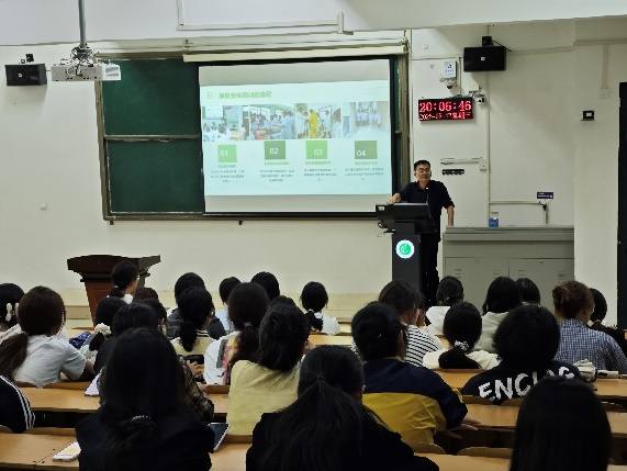 为强化新生实验室安全意识,夯实实践教学安全基础,9月13日,我院实验中心组织明虎斌、李凯歌、张明霞、刘冉、四位教师,在崇文校区教学楼C楼(C001、C002)阶梯教室为2025级护理学、康复治疗学专业480余名新生开展“实验室安全第一课”专题培训。本次培训紧扣“安全为先、规范为本”主题,通过理论讲解、案例警示与互动答疑,为新生的实践学习之旅系紧“安全绳”。
