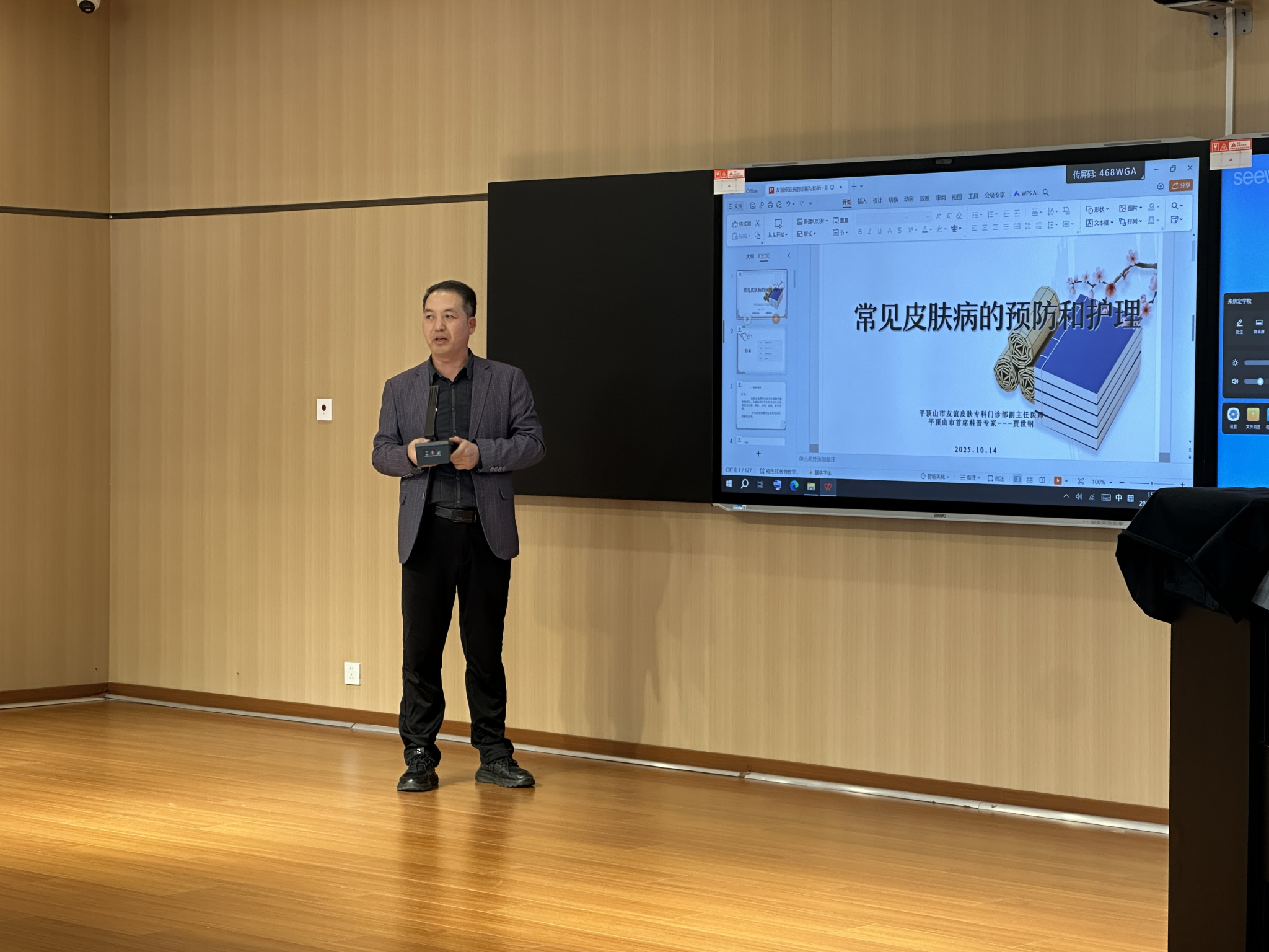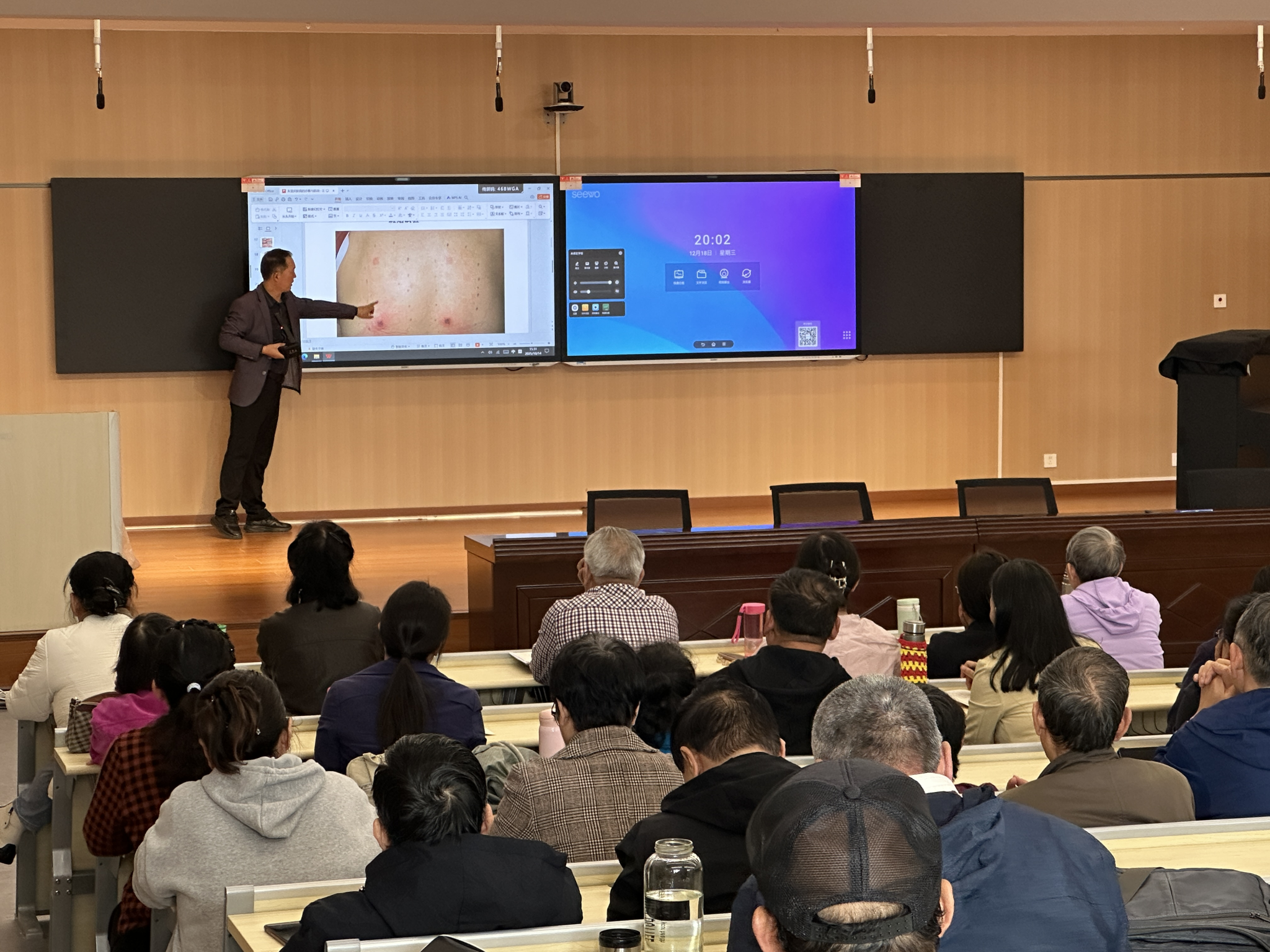 为了提高老年人的健康意识,增强皮肤病预防和护理知识。10月14日下午,我院组织客座教授贾世钢携团队走进市老干部学习活动中心,以“常见皮肤病预防和护理”为主题举办了一场专题科普讲座。此次活动吸引了90余名老年朋友的积极参与,大家热情高涨,现场座无虚席。