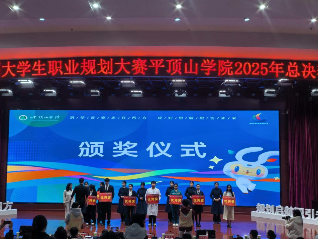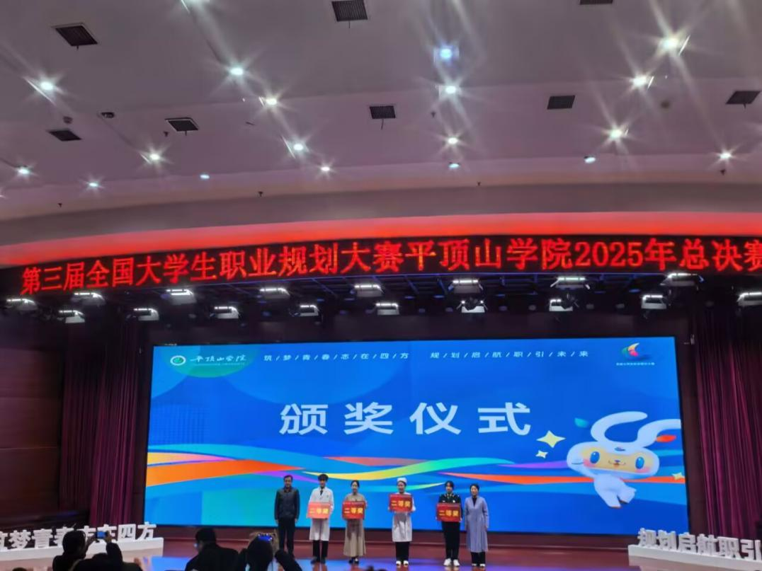 12月11日,第三届全国大学生职业规划大赛平顶山学院2025年总决赛在学校中心会议室圆满举行。经过激烈角逐,我院由李琦、袁辰阳等老师指导的石佳雯、张家鑫同学荣获“二等奖”;卫晓娅老师指导的侯子超同学荣获“优秀奖”。我院荣获本届比赛的“优秀组织奖”。