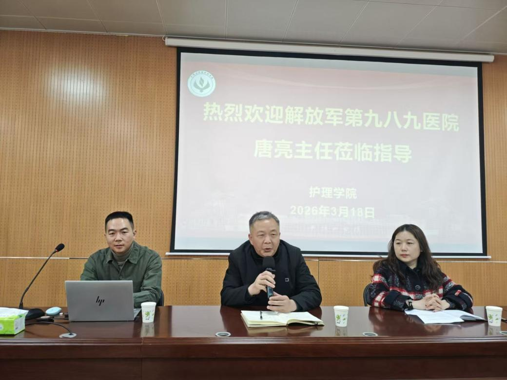 为深化护理学、康复治疗学特色学科建设,聚焦拔尖人才“临床视野拓展+专业能力精深”培养目标,搭建院校协同育人平台,2026年3月18日,我院特邀联勤保障部队第九八九医院康复医学科主任唐亮博士开展“整体康复诊疗策略” 专题学术讲座。我院院长夏西超、副院长袁凤娟、各教研室主任、骨干教师及精英班学生参会,讲座由教科办主任张祎主持。
