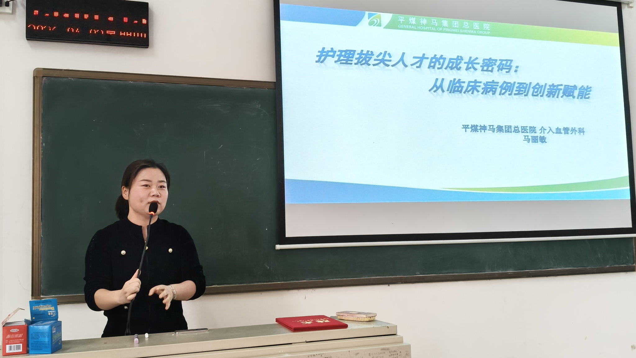 为深化护理特色学科发展,落实拔尖人才培养目标,4月2日,我院特邀平煤神马医疗集团总医院副主任护师、介入血管外科护士长马丽敏,为南丁格尔精神传承班开展专题讲座。
