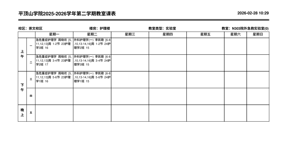 院外急救实验室建设于2010年,主要面向本校护理学专业。开设实验课程:急危重症护理学、外科护理学。通过实践,使学生掌握急危重症和外科护理课程相关操作技术。