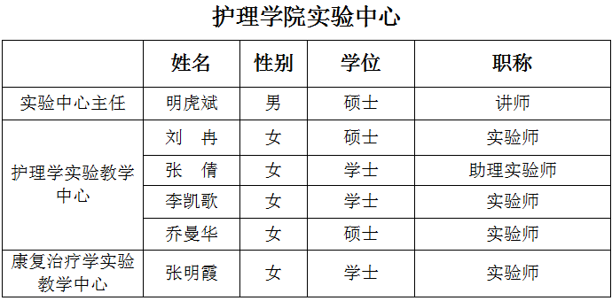 护理学院实验中心包括护理学实验教学中心和康复治疗学实验教学中心。